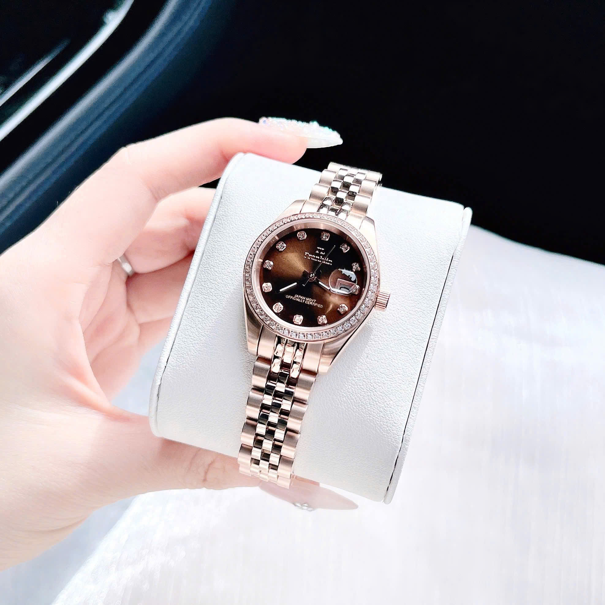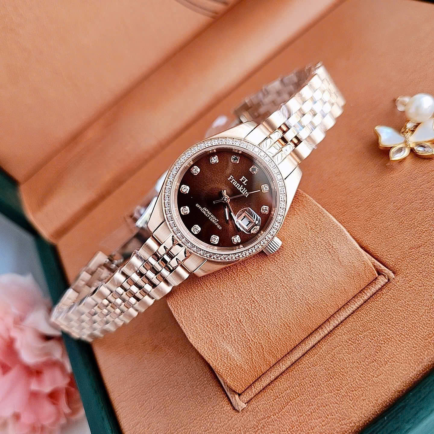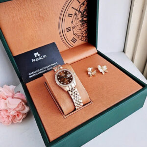 🍇 Super beautiful R.L form with a stone-studded bezel, brown dial with SB effect mixed with a trendy rose gold demi strap