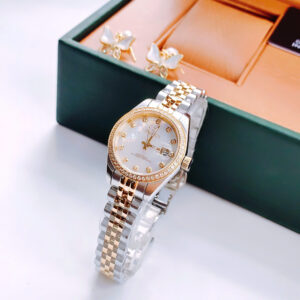 ✡Super beautiful R.L form with a stone-studded bezel, rose gold dial with SB effect, and trendy demi-rose gold strap.
