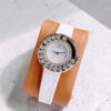🍬 Simple round dial with sunburst pattern, accented with crystal hour markers and a bezel set with stones for an impressive look