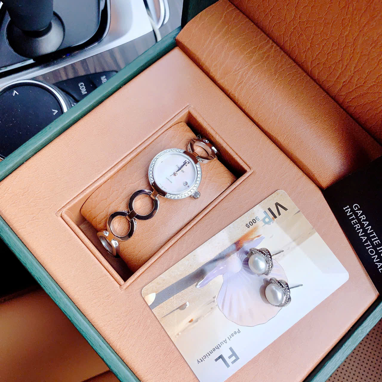 🍬Round dial with mother-of-pearl background – impressive date window at 3 o’clock with a stone-encrusted bezel
