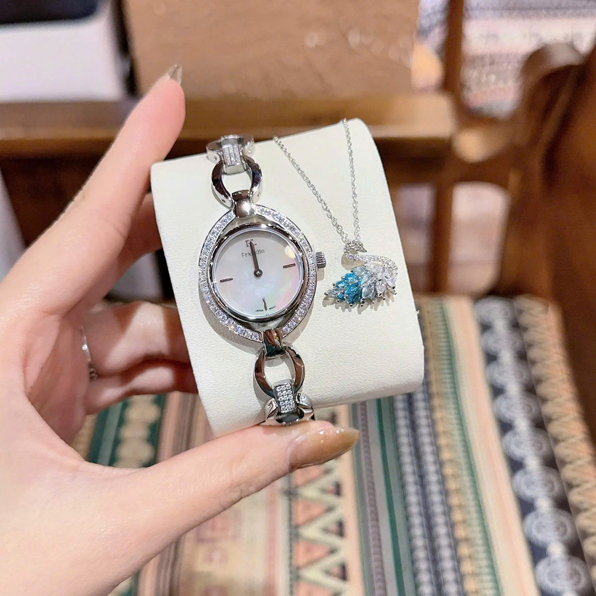 🍒 Unique oval dial with Swarovski crystals around the face. 🍒 Perfectly sized ~32mm case. 🍒 Beautiful sapphire crystal. Durable Japanese movement.