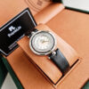 🍒Sleek stainless steel case and leather strap