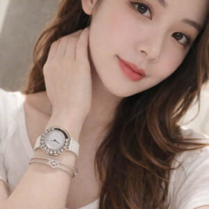 Dubbed the “hot girl watch,” its most valuable feature is the sparkling crystal bezel that rotates around the dial. Each wrist movement reflects light, making the overall design incredibly striking and captivating.