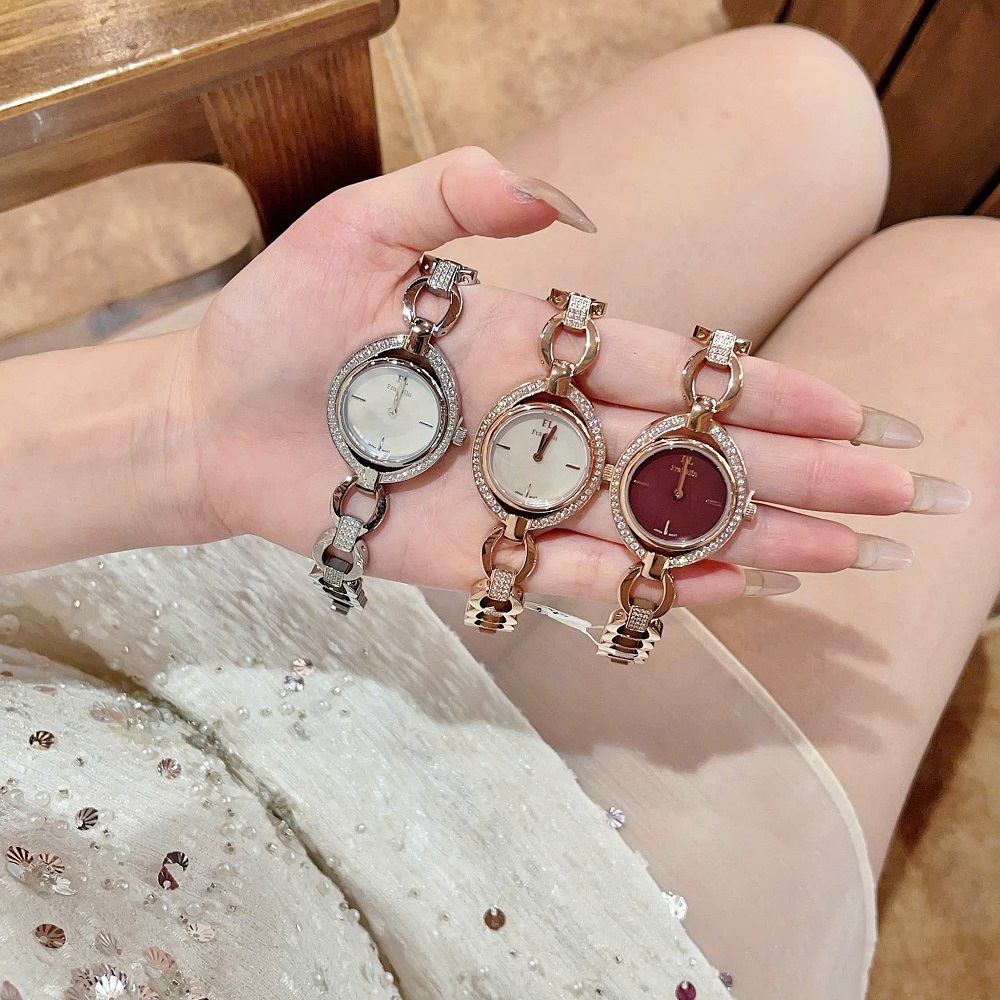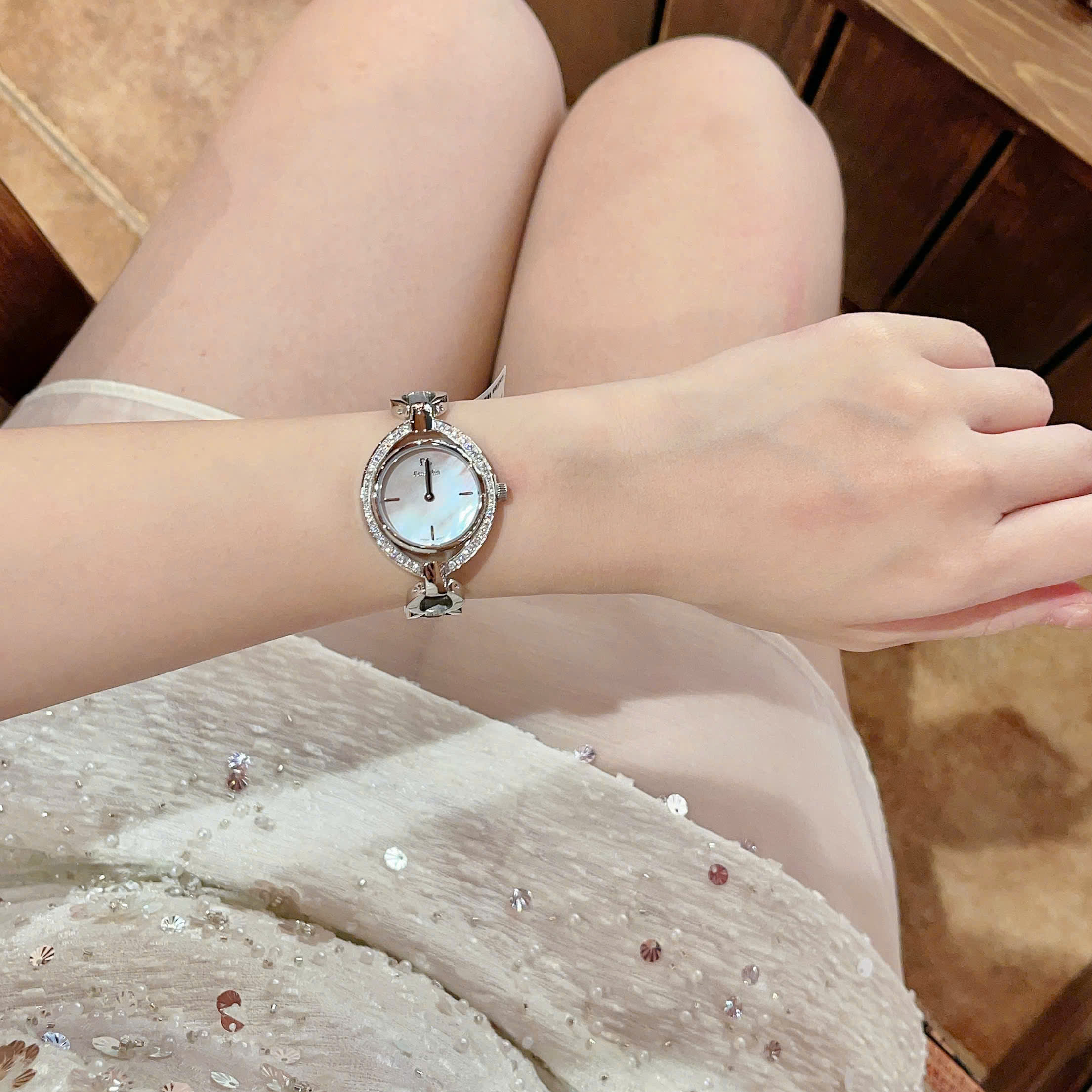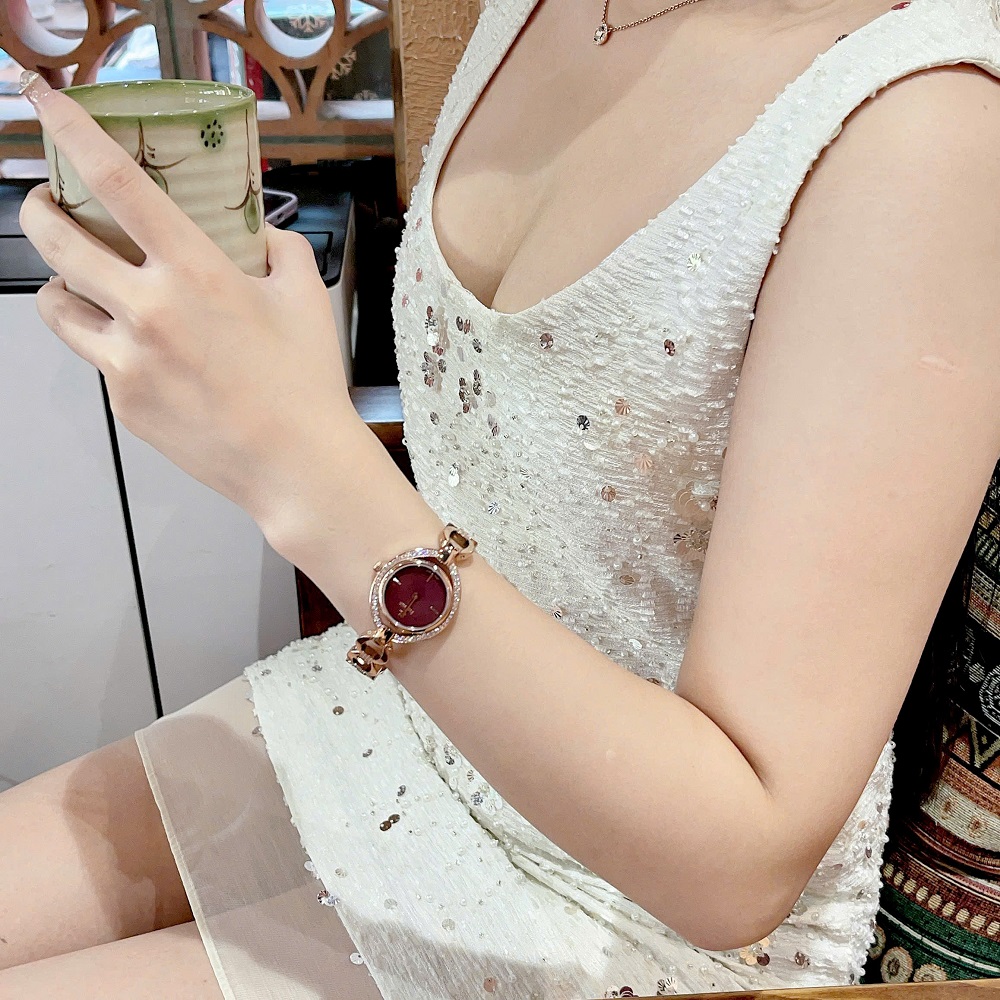- Unique oval face, adorned with Swarovski crystals around the dial.